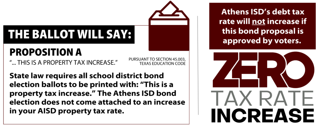VOTERS 65 AND OVER: There is no attached tax rate increase to this bond referendum. However, all individuals who are 65 and over should be aware that under state law, if you have applied for and received the Age 65 Freeze on your homestead, your school taxes CANNOT be raised above their frozen level unless you make significant improvements or additions to your home. If you are 65 or over, own your home and have NOT applied for the Age 65 Freeze on your homestead, please contact your county appraisal district.